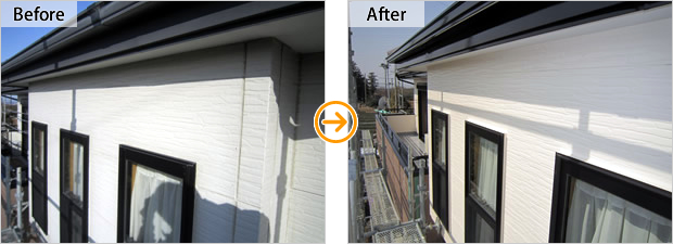 フッ素膜もまだ生きている状態でしたので下サイディングはコーキングの打ち替えのみで、
